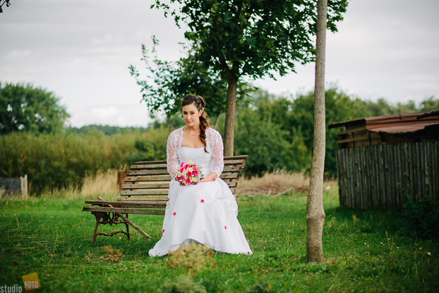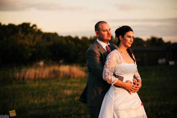 Po fotení rande sme sa stretli naostro v Nitre v kaderníckom salóne a pokračovali na fotenie na letisko v neďalekých Janíkovciach. Slnko pálilo ako samopal, myslím že ani tým lietadlám sa nechcelo veľmi lietať. Potom sme išli na železničnú stanicu v Nitre – nie priamo do čakárne, ale kúsok vedľa. Dávno som si tam všimol tehlové steny, fotil som tam pred pár rokmi jednu nitriansku kapelu. To miesto má také zvláštne čaro – niečo zabudnuté. staré, ošumelé ale presiaknuté nostalgickou atmosférou. Sobáš aj hostina boli na ranči Nové Sedlo pri Cabaji-Čápore, takže sme sa pred búrkou skryli v stajniach. Navečer zas vyšlo slnko, tak sme samozrejme skúsili nafotiť pár záberov aj pri magickom zlatom svetle. O zábave nebudem písať, tú si radšej pozrite, stojí to za to.